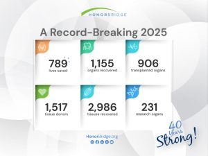 “2025 was an incredible year for HonorBridge and for everyone whose lives were touched by organ, eye, and tissue donation,” said Danielle Bumarch, president and CEO of HonorBridge. “I’ve been inspired by our dedicated teams, the generosity of donor families, and the recipients whose lives have been transformed. My hope and expectation for HonorBridge is that it continues to grow, innovate, and reach even more people in the years ahead.”