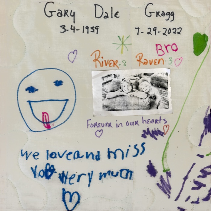 This was a very special quilt square. Our grandchildren made this for Paw Paw. Gary loved them dearly. River is 8 years old and Raven is 3 years old. Gary died when Raven was 1 year old and River was 5 years old. I told them he saw this beautiful square they created from Heaven. Gary was such a great man and beautiful soul. I still cry for him and miss him daily. We will always love him!