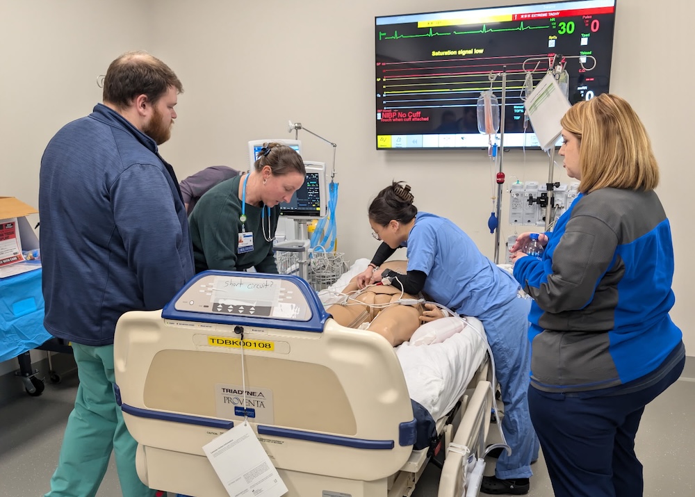 One of the most exciting additions to the sim lab is a high-tech mannequin, one of the newest and most advanced patient simulators on the market. The mannequin supports a wide range of procedures, including chest compressions, IV insertions, catheter placements, surgical airways, intubations, and much more.